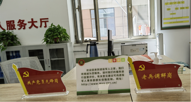 为进一步做好退役军人工作,今年4月,自治区退役军人事务厅在服务大厅设置“党员先锋岗”和“老兵调解岗”,厅机关副处级以上干部和有退役军人身份的党员干部轮流到服务中心大厅参与信访接待、政策咨询、法律援助等各项服务工作,31名在职党员干部(其中16名退役军人干部)累计接待退役军人50余人次,在耐心细致做好服务的同时,使服务大厅变成退役军人心有所归、情有所依的温馨之家。