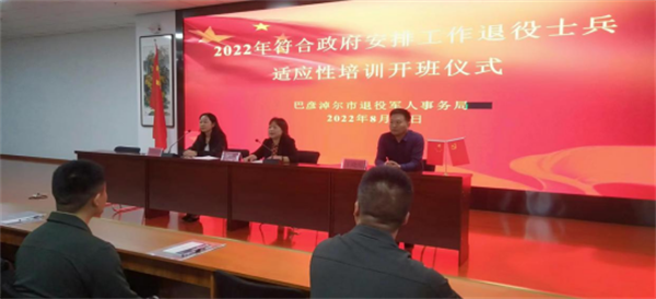 为了使退役军人更快军地融合、适应工作环境,8月29日上午,根据年度工作安排,巴彦淖尔市退役军人事务局组织开展了2022年符合政府安排工作退役士兵适应性培训班帮助退役军人顺利转换角色,尽快融入社会生活。