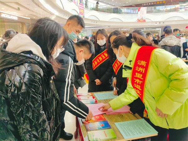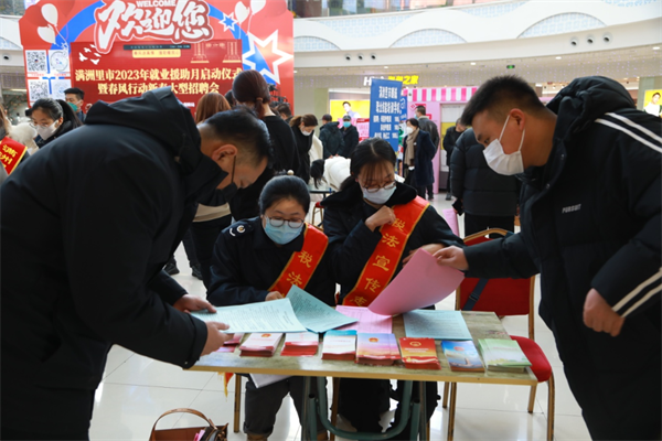 为全面深入贯彻党的二十大精神,坚决落实退役军人事务部、国家发展改革委、财政部、人力资源社会保障部、农业农村部、税务总局、市场监管总局、全国工商联等8部门联合印发《关于加强就业困难退役军人帮扶工作的意见》,促进满洲里市退役军人及随军家属就业,2023年2月18日上午,满洲里市退役军人事务局联合满洲里市人力资源和社会保障局、国家税务总局满洲里中俄互市贸易区税务局、满洲里市就业服务中心、满洲里市万达广场等多家单位成功举办了以“春风送真情 援助暖人心”为主题的满洲里市2023年退役军人暨随军家属就业专场招聘会。