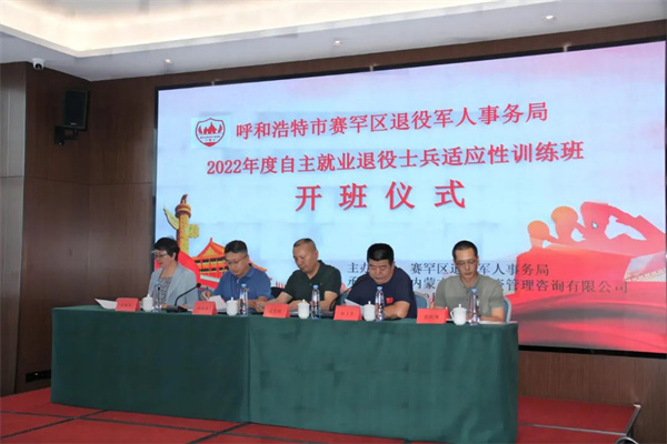 为全面落实中央、自治区、市县各级政府关于做好自主就业退役士兵就业创业相关工作要求,助力退役军人尽快适应地方社会发展,进一步了解当前就业形势,提高自主就业能力,为广大退役军人就业创业搭建便捷桥梁。9月16日,由赛罕区退役军人事务局主办的赛罕区2022年度首批自主就业退役士兵适应性培训开班仪式顺利举行,旨在全面提升退役士兵教育培训成效、提高能力素质、实现高质量充分就业。呼和浩特市退役军人事务局就业创业科科长靳瑞峰、赛罕区退役军人事务局党组书记、局长左东明、赛罕区退役军人事务局党组成员、副局长邹立军、武丽花、赛罕区退役军人服务中心主任张凯博出席开班仪式。
