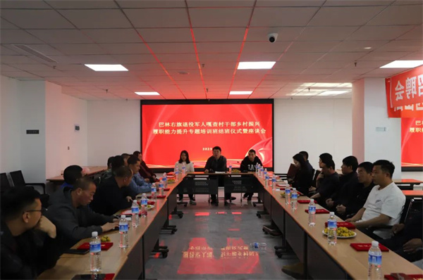 为进一步提高全旗退役军人“兵支书”“兵委员”综合能力素质,充分发挥他们在全面推进乡村振兴、加快农业农村现代化建设中的“领头雁”“排头兵”作用,3月17日—23日,由巴林右旗委组织部、旗退役军人事务局联合主办,赤峰育龙职业技能培训学校承办的全旗退役军人嘎查村干部(兵支书、兵委员)乡村振兴履职能力提升专题培训班隆重举行,全旗共有30余名“兵支书”“兵委员”参加培训并顺利结业。
