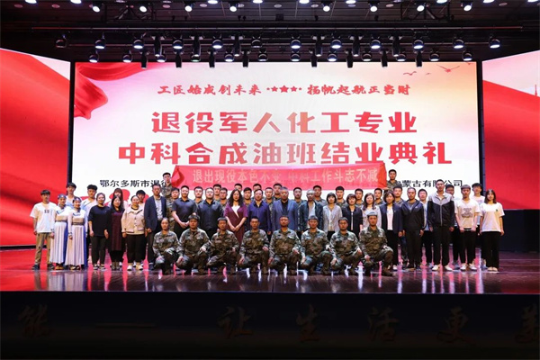 5月18日下午,为期一年的鄂尔多斯市“中科合成油”退役军人学历提升培训班顺利结业并在鄂尔多斯职业学院举行结业仪式。鄂尔多斯职业学院院长张建林,市退役军人事务局党组成员、三级调研员邬志远,中科合成油内蒙古有限公司副总经理张世和出席仪式。鄂尔多斯市退役军人事务局、鄂尔多斯职业学院和中科合成油内蒙古有限公司有关负责同志以及职业学院化工系全体师生共计200余人参加仪式。