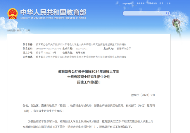 各招生单位要将“退役大学生士兵计划”相关政策要求纳入本单位招生章程中提前公布,并充分利用“中国研究生招生信息网”(网址:https://yz.chsi.com.cn)和本单位网站等渠道,做好政策宣传解读、咨询答复等服务保障工作。要提醒报考“退役大学生士兵计划”的考生,网上确认前应到安置地乡镇(街道)退役军人服务站完成退役军人建档立卡信息登记,避免因登记信息不准确影响后续确认和考试录取工作。要畅通考生申诉渠道,建立完善接诉即办机制,对相关申诉及时回应处理。