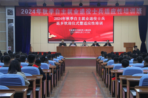 9月23日,巴彦淖尔市退役军人事务局组织开展2024年秋季自主就业退役士兵返乡欢迎仪式暨适应性培训开班仪式。市退役军人事务局党组书记、局长任海韬,党组成员、副局长孙德胜,市军促会相关领导和工作人员及170余名载誉返乡的自主就业退役士兵参加了此次开班仪式。