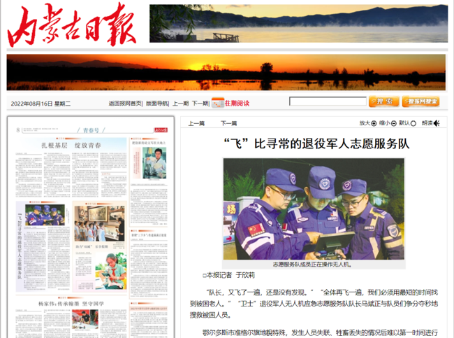 鄂尔多斯市准格尔旗地貌特殊,发生人员失联、牲畜丢失的情况后难以第一时间进行寻找和搜救,当地的群众和公安机关经常向“卫士”退役军人无人机志愿服务队寻求帮助。