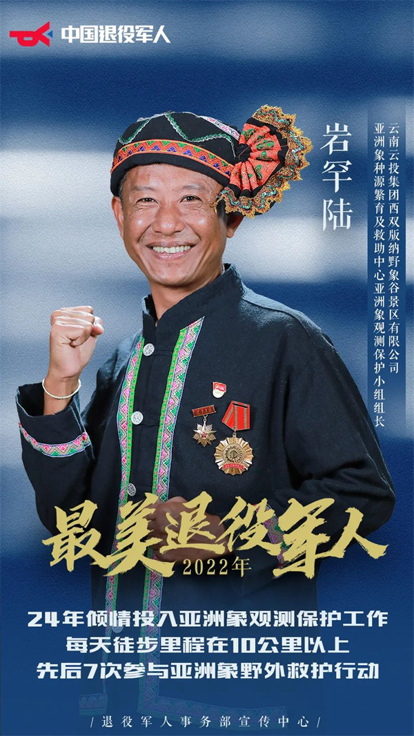 岩罕陆 男,布朗族,中共党员,1975年出生,1994年入伍,1997年退役,云南云投集团西双版纳野象谷景区有限公司亚洲象种源繁育及救助中心亚洲象观测保护小组组长。