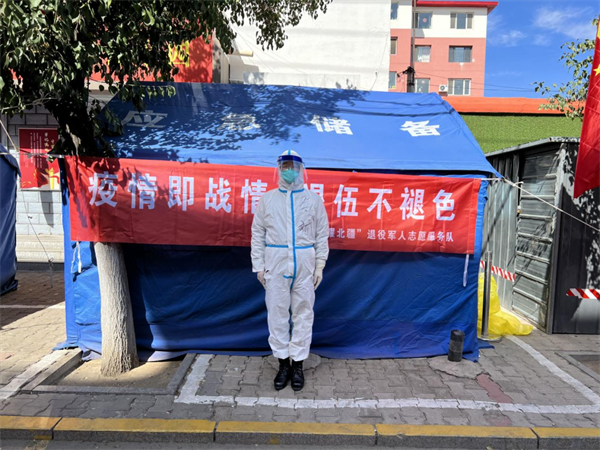 疫情就是命令,防控就是责任,一场突如其来的疫情打乱了人们的正常工作生活秩序,乌兰察布市集宁区、卓资县相继暴发疫情,在这关键时刻,正在担负疫情隔离工作任务的全区模范退役军人、乌兰察布退役军人协会会长雷景斌一边做好隔离工作仼务,一边组织和发动退役军人投入疫情防控。他和退役军人闫俊青、张志强、王艳新、朱智新、邢志辉、张国玺、卢勇智等40多人先后在所在各社区、学校、医院、企业参加疫情防控志愿服务,不畏辛劳每天仅能保证4到5小时的休息时间,全程参与核酸检测、工矿企业、学校值守等工作,用实际行动又一次彰显“退役不褪色、永当排头兵”的庄严承诺,为地区的防控贡献着自己的绵簿之力。