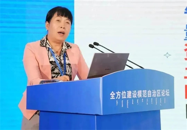 胡达古拉代表自治区党委向出席论坛的国家民委、北京市委统战部有关领导同志和区内外专家学者表示热烈欢迎!她说,内蒙古是党中央直接领导建立的我国第一个省级民族自治区,是党的民族区域自治制度发源地,自治区成立70 多年来,各族干部群众始终心向党,心向党中央,赢得并长期保持了“模范自治区”的崇高荣誉。全区上下牢记嘱托、感恩奋进,深入学习贯彻习近平总书记考察内蒙古时的重要指示和重要讲话精神,自治区党委召开十一届六次全会,出台《关于全方位建设模范自治区的决定》,提出全面建设铸牢中华民族共同体意识示范区。本次论坛是深入贯彻落实习近平总书记关于加强和改进民族工作的重要思想、对内蒙古的重要指示精神的具体行动,是汇聚各方智慧力量投身全方位建设模范自治区实践、助推内蒙古在中国式现代化建设中闯出新路的具体举措。鄂尔多斯市作为全国民族团结进步示范市、自治区高质量发展排头兵,在铸牢中华民族共同体意识、全方位建设模范自治区方面开展了积极的探索和推动。希望与会专家学者畅所欲言、集思广益,围绕推进全方位建设模范自治区献计献策;希望自治区民族工作协调机制成员单位和各盟市率先把铸牢中华民族共同体意识贯穿融入各项工作中,率先落实自治区党委《决定》部署要求,互学互鉴、共同提高,进一步汇聚起全方位建设模范自治区的强大力量,奋力书写中国式现代化内蒙古新篇章。