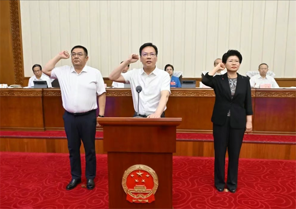 7月24日,唐毅等新任职人员向宪法庄严宣誓。记者 马建兵 摄