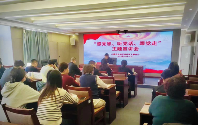 为深入学习贯彻习近平总书记对内蒙古的重要指示精神,教育引导厅系统广大党员干部群众以强烈的感恩之心和奋进之志抓好《国务院关于推动内蒙古高质量发展奋力书写中国式现代化新篇章的意见》(以下简称《意见》)的贯彻落实,11月29日,自治区退役军人事务厅组织开展“感党恩、听党话、跟党走”主题宣讲,厅系统党员干部参加。