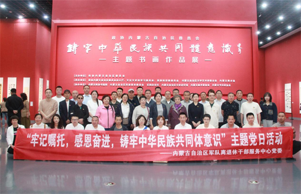 为深入学习贯彻习近平总书记关于加强和改进民族工作的重要思想、习近平总书记关于铸牢中华民族共同体意识的重要论述,推进全区民族政策宣传月活动走深走实,5月9日,自治区军队离退休干部服务中心党委组织军休干部、工作人员50余人前往内蒙古美术馆参观“铸牢中华民族共同体意识”主题书画展,开展“牢记嘱托、感恩奋进,铸牢中华民族共同体意识”主题党日活动。