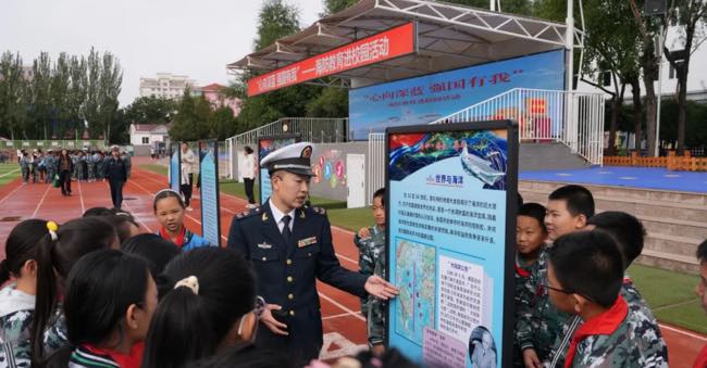 在人民公园北门开展的“城舰同心筑海防 军地共建双拥城”海防教育宣传活动中,海军乌海舰官兵通过设立图文展板、开展海防知识问答、专题讲解等形式,让海防知识走进乌海群众。在海勃湾区第八小学举行的“心向深蓝 强国有我”——海防教育进校园活动中,官兵们与乌海孩子亲切互动,围绕海防安全问题向孩子们答疑释惑,并向学校捐赠了体育用品,在孩子们心中种下了一颗报国强军的“种子”。