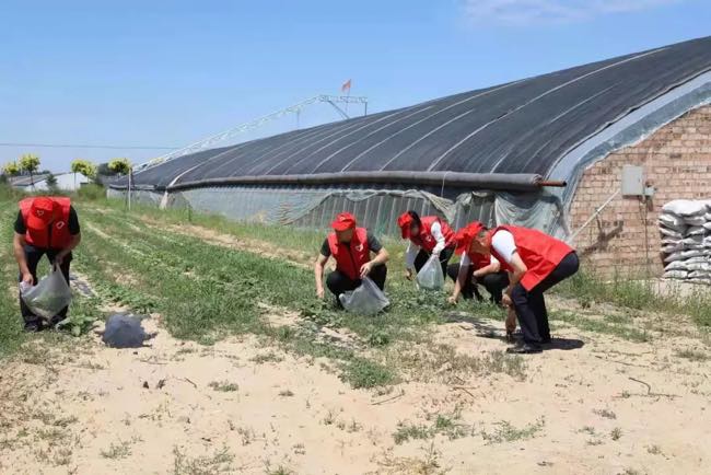 主攻一个目标,推动村域农牧民共同富裕。把村集体经济发展作为农业增效、农民增收、农村繁荣的突破口,帮助兴胜店村量身定制“育苗基地项目”,培育优势特色产业,村民实现了“租金、股金、薪金”的增收渠道。温室大棚收“租金”,以30栋育苗温室大棚为基础,以淮安柴米河农业科技股份有限公司农业技术和管理模式为依托,从2021年起,兴胜店村每年以村集体温室大棚等设施设备收租金60万元。利益联结分“股金”,村民以土地入股等形式参与村集体经济发展,合资组建“鄂尔多斯市柴米河农业科技有限公司”,村集体公司占股15%,采取“股份合作”的形式进行“股金分红”。就地打工赚“薪金”,鼓励有能力的村民就近到育苗产业项目基地打工,通过稳定和临时两种方式,每天平均吸纳30余名当地村民在育苗基地打工,育苗产业为村民已提供了50余万的务工收入。2021年,新争取实施了2.5万平方米的育苗冷棚项目,不断培育壮大村集体经济,筑牢共同富裕基石。