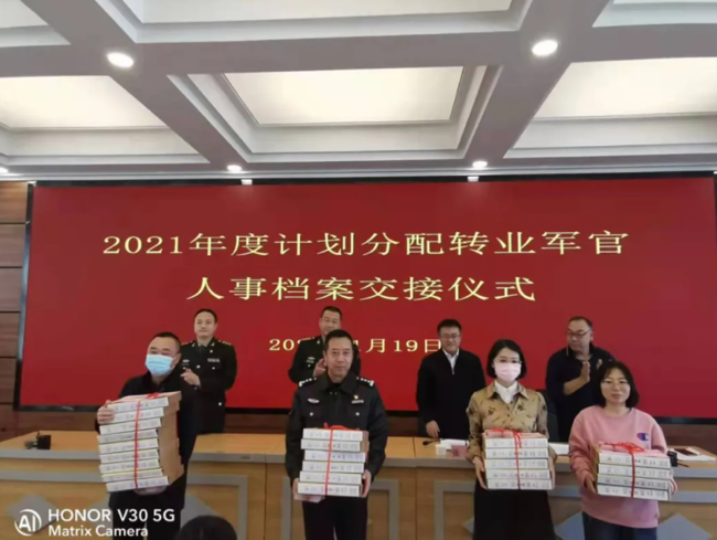 会议同时举行了转业军官、随调家属档案移交仪式。2021年11月退役军人事务部等7部门印发了《关于加强和改进退役军人人事档案管理利用工作的意见》,为贯彻落实《意见》精神,呼和浩特市退役军人事务局按照干部人事档案管理要求,对转业军官档案进行了数字化加工并制作了数据光盘,数据光盘随纸质档案一并移交接收单位,相关数据可直接导入干部人事档案管理系统。