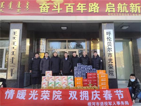 1月20日,受根河市委市政府指派根河市退役军人事务局前往呼伦贝尔市光荣院,为市光荣院职工及所有在院老人、优抚对象送上党的关怀和新春祝福。