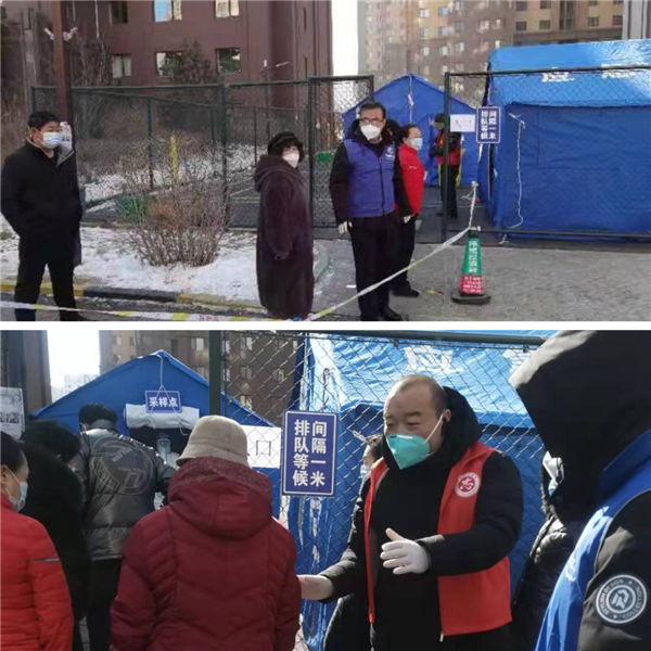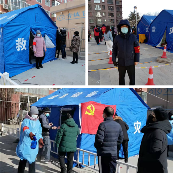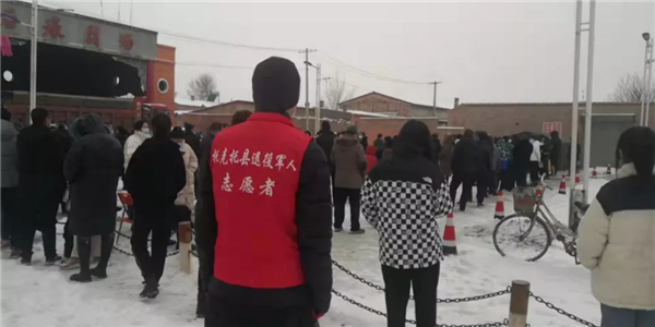 市退役军人事务局系统党员干部坚持值守核酸检测第一线,积极响应“我是党员、我先上“的号召,敢打硬仗、无惧风雪,在零下十几度的室外,浴“雪”奋战 ,组建党员突击队7支,共有70多名党员积极投身包联社区疫情防控第一线。同时,选派10名党员加入市委直属机关工委党员志愿服务队,选派4名干部到市疫情防控指挥部工作。一个党员就是一面旗帜,我们的口号是:请党放心、抗疫有我!