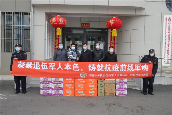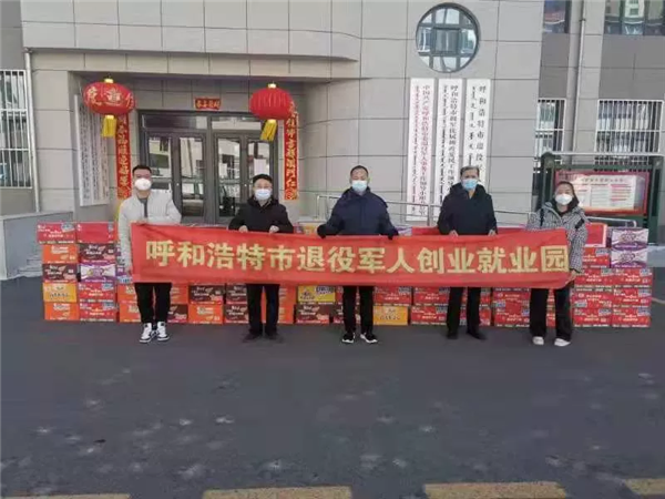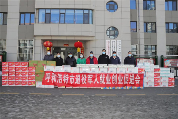 2月21日,呼和浩特市伊顺食品有限公司为呼和浩特市退役军人事务局捐赠桶装面30件,榨菜7件,火腿肠9件。