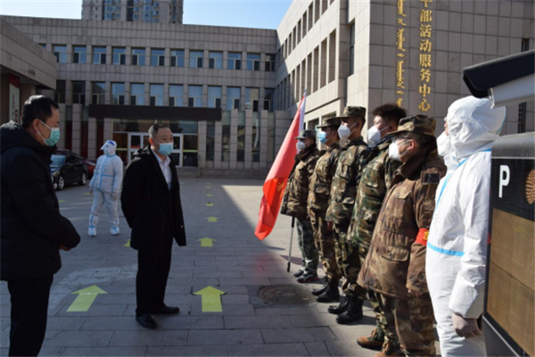 2月23日,包头市委常委、副市长杨枫到市老干部活动中心核酸采集点和包钢十七小消杀现场检查督导疫情防控工作并看望慰问奋战在一线的包头市退役军人志愿服务队员。市退役军人事务局副局长曹继光陪同参加慰问。