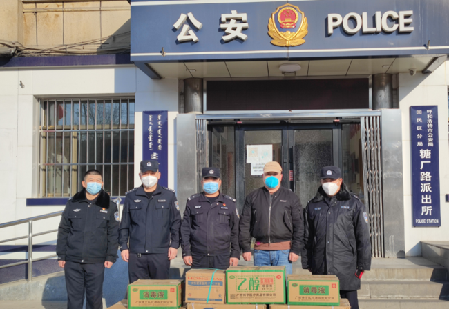 “警察同志您好,我给你们买了点防护物资,你们辛苦了······”2月24日,市民聂建军来到呼和浩特市公安局回民区分局糖厂路派出所,将N95口罩、手套、防护服、护目镜等防护物资捐赠给了糖厂路派出所。