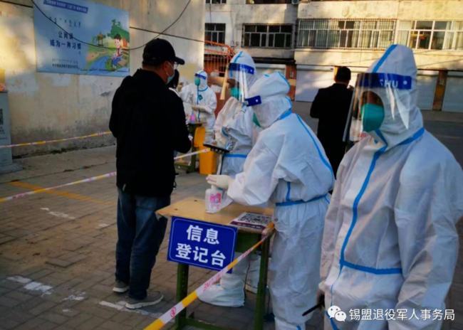 面对锡林浩特市严峻复杂的疫情防控形势,锡林郭勒盟退役军人就业创业促进会先后组织16名退役军人志愿者,会同包联单位第一时间赶赴包联小区配合开展疫情防控任务。他们穿梭于楼层与楼栋之间,全力协助盟退役军人事务局和社区落实场所搭建、核酸检测、防疫消杀、值班值守、物资配送等常态化防控措施,用实际行动彰显退役军人的责任与担当和“召必回,战必胜”的拳拳之心。