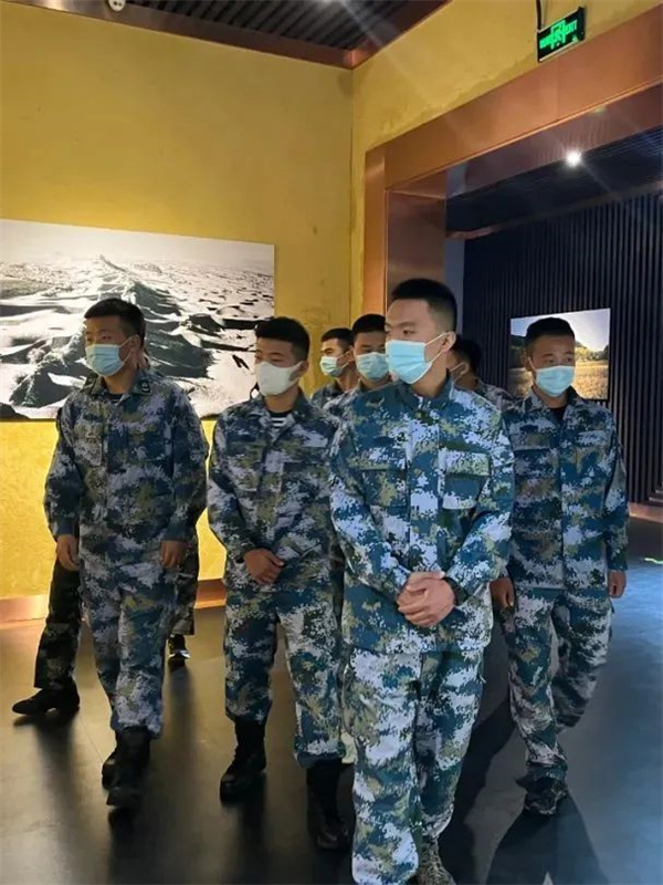 来自海军、陆军、特战旅、武警部队的23名退役士兵佩戴大红花,整齐列队参加欢迎仪式。