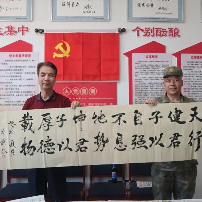 旗书法协会为戍边官兵们带去了一场书法艺术的盛宴。书法家们将对部队官兵们的关心、关爱都倾注在了笔端,他们挥毫泼墨、尽抒豪情,提笔书写行云流水,在场官兵们无不赞叹。赵明荣秘书长为军营写的《胡杨赋》笔法凝练,潇洒自如,王元政老师、旗书法协会会长吕步前为戍边战士书写的《大漠军魂北疆卫士》、《军魂》笔力遒劲,气势恢宏,此次书法作品均赠送给了部队及官兵们。通过此次书法进军营不仅表达了对人民子弟兵的崇高敬意,还提升了官兵们的文化修养,陶冶了官兵们的艺术情操。