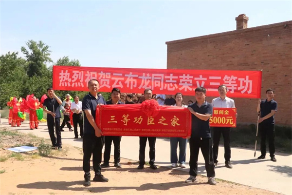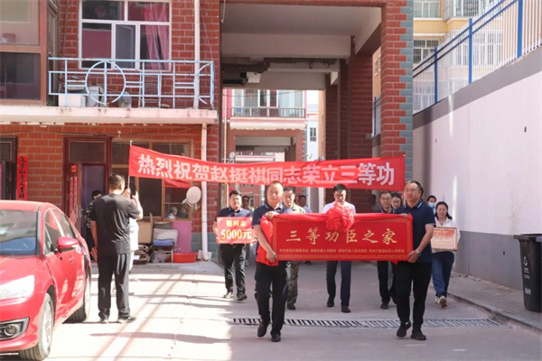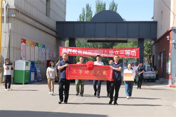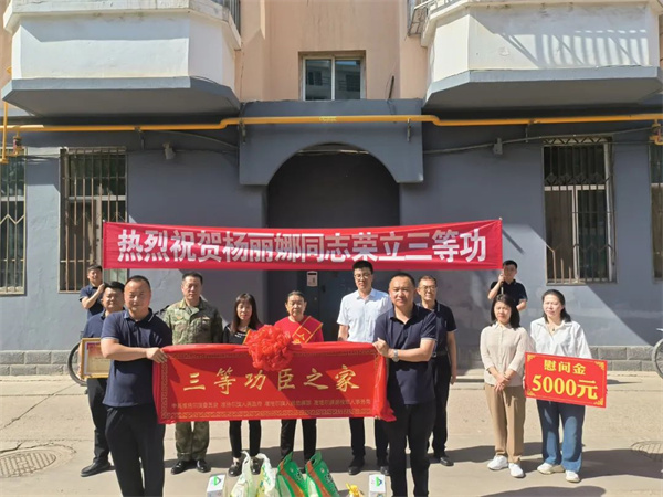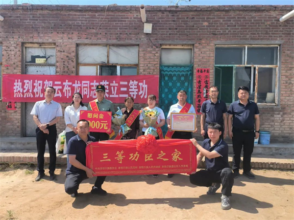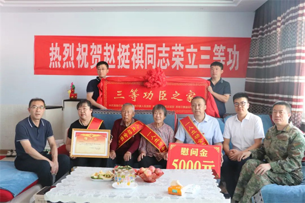 为进一步弘扬拥军优属的光荣传统,做好新时代双拥工作,营造全社会尊崇关爱军人的良好氛围,6月15日上午,准格尔旗副旗长张亚男、人武部政委董玉君与退役军人事务局局长周蔚东、各乡镇街道等单位负责同志组成慰问组,先后来到兴隆街道、薛家湾镇、大路镇为荣立三等功的家庭送去立功喜报和“三等功臣之家”荣誉牌匾,让军人、军属、家乡父老共享荣光。