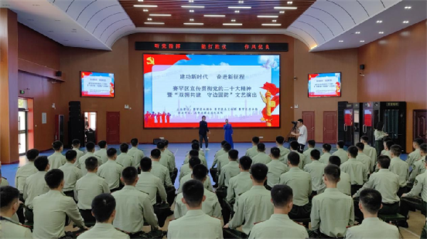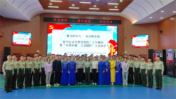区乌兰牧骑紧紧围绕学习宣传贯彻党的二十大精神主题,精心编排了弘扬军民团结、军地共建的双拥文艺节目及法制宣传节目。通过精彩的演绎,唱响了学习宣传贯彻党的二十大精神的时代强音,舞出了昂扬向上的卓越风采,极大丰富了官兵的精神文化生活,凝聚了军心士气和当好祖国卫士的决心、信心,彰显了文化拥军、法治拥军鱼水情深和军民团结一家亲的浓厚氛围。整场演出精彩纷呈,掌声不断,气氛热烈。