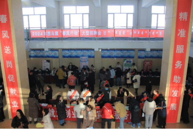 为全面贯彻党的二十大和二十届二中全会精神,坚决落实党中央、国务院及自治区党委、政府关于就业工作决策部署,集中帮扶农牧民工、就业困难人员、高校毕业生等重点群体就业,为劳动者求职和用人单位招聘搭建“双向奔赴”的对接平台,扎实做好稳就业工作,3月7日,西乌旗在人社局一楼大厅举办以“春风送岗促就业 精准服务助发展”为主题的2024年西乌旗“春风行动”大型招聘会。