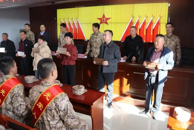为充分发挥“光荣之家”牌匾的荣誉激励作用,县退役军人事务局工作人员为新兵家庭进行上门悬挂,希望军属鼓励入伍新兵在部队安心服役,刻苦训练,争取立功评优,为部队和家乡争光添誉。