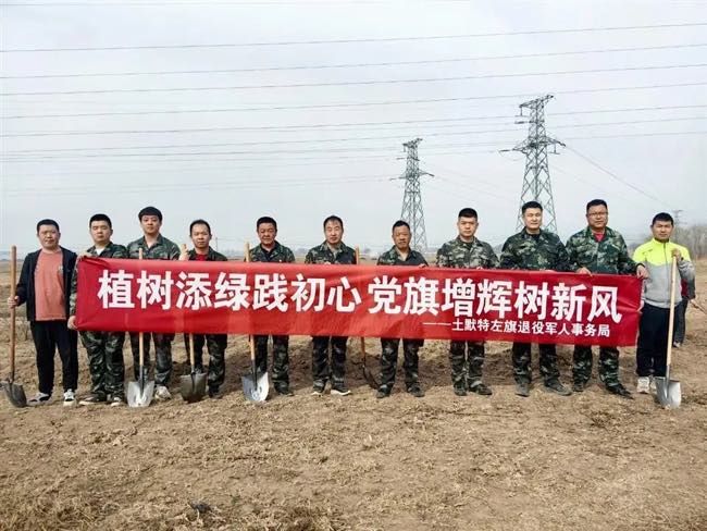 4月8日上午,土左旗退役军人事务局组织系统干部职工到毕克齐镇原国营苗圃义务植树基地,为美丽家园再添新绿。