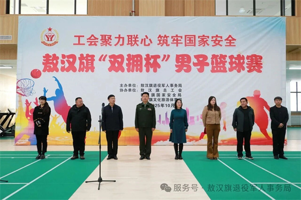 为推动双拥工作高质量发展,巩固军政军民团结,发扬“拥军优属、拥政爱民”的优良传统,10月28日,由敖汉旗退役军人事务局联合旗总工会、旗国家安全局、旗文化旅游体育局共同举办的“工会聚力凝心 筑牢国家安全”敖汉旗“双拥杯”男子篮球赛在内蒙古农商行敖汉旗支行正式拉开帷幕。旗委常委、旗人武部政委姜昆山,旗政府副旗长宝林佳,以及旗直有关部门负责人参加开幕式。