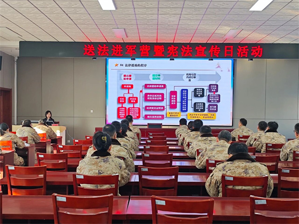 在第十二个国家宪法日来临之际,为深入学习贯彻习近平法治思想,进一步提升官兵法治素养和依法维权能力,乌兰浩特市退役军人事务局联合市司法局,邀请专业法律援助律师走进驻乌部队,开展送法进军营暨宪法宣传日主题活动。