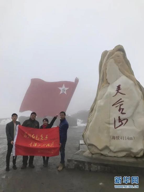 于都县革命烈士纪念馆馆员翻越夹金山时留影(资料照片)。新华社发(于都县革命烈士纪念馆供图)