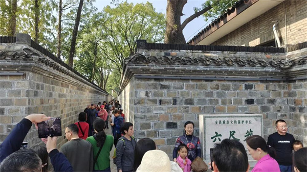 人们在安徽省桐城市六尺巷游览拍照(2024年11月2日摄)。新华社记者 陈诺 摄