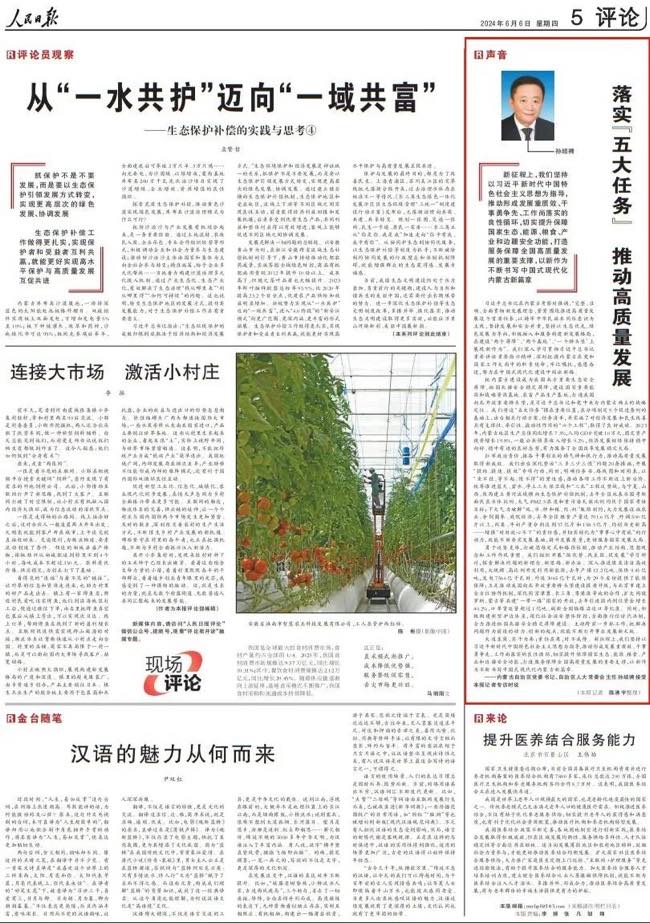 2024年6月6日,《人民日报》第5版刊发内蒙古自治区党委书记、自治区人大常委会主任孙绍骋专访文章《落实“五大任务” 推动高质量发展》。