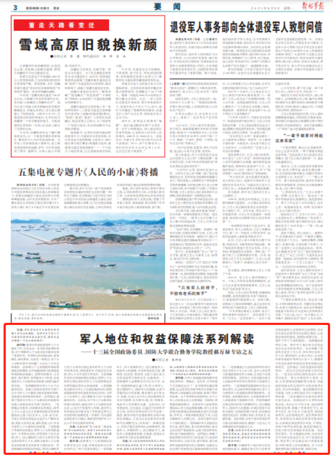 记者:从最初的“军人优先”,到后来的“军人依法优先”,体现了全社会对军人职责使命的认同和尊崇。请您为我们解读一下法律在这方面有哪些创新举措?