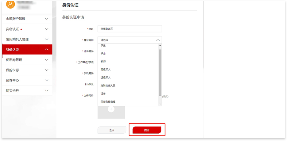 前往我的-身份认证-添加申请